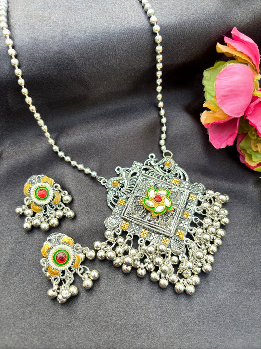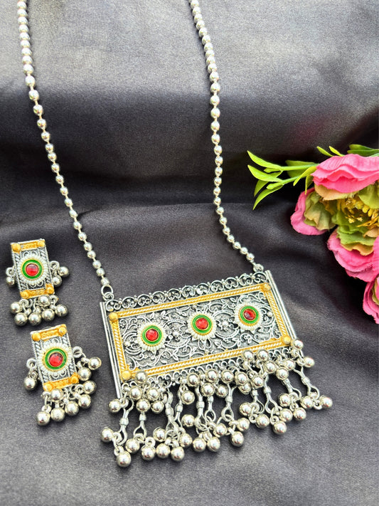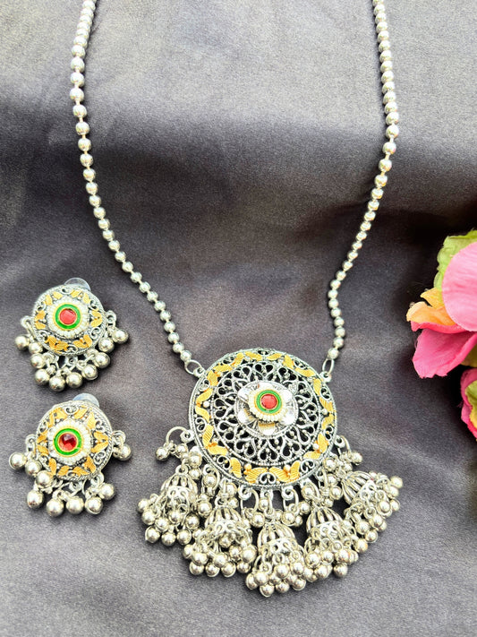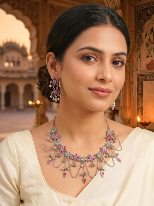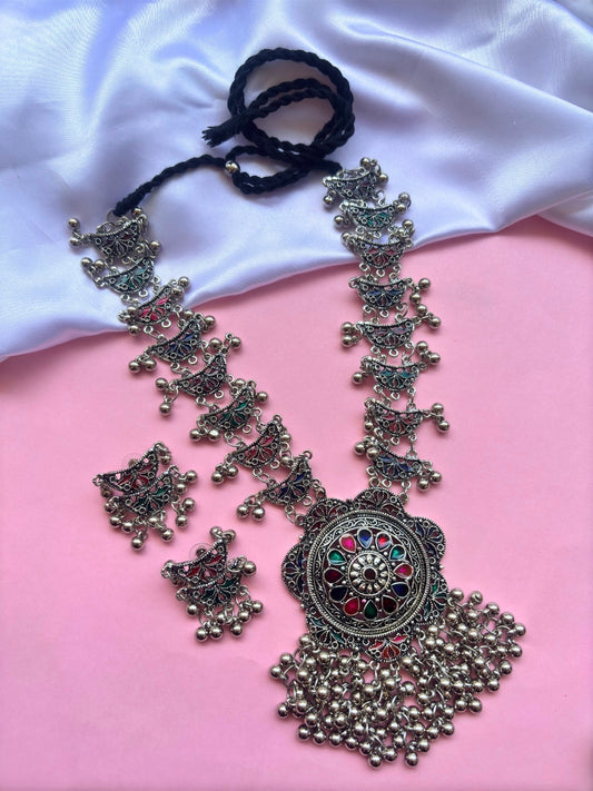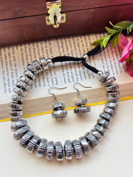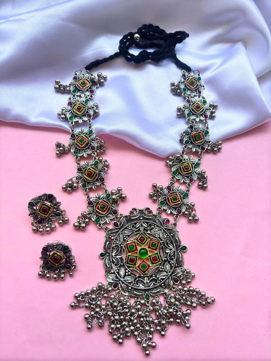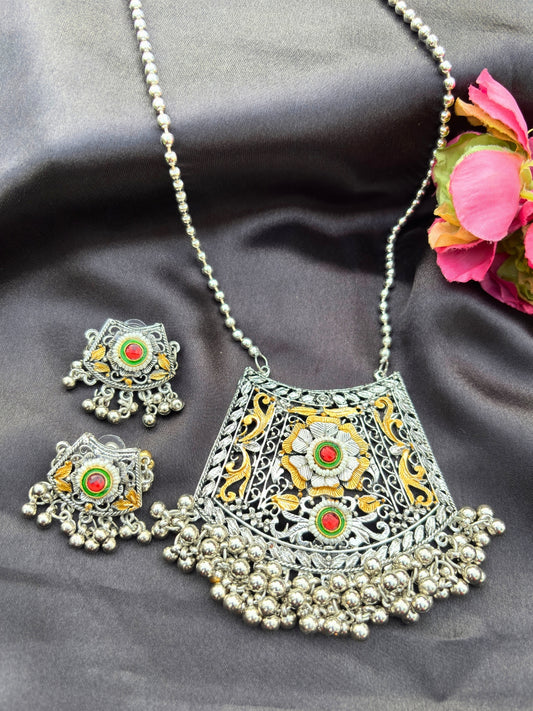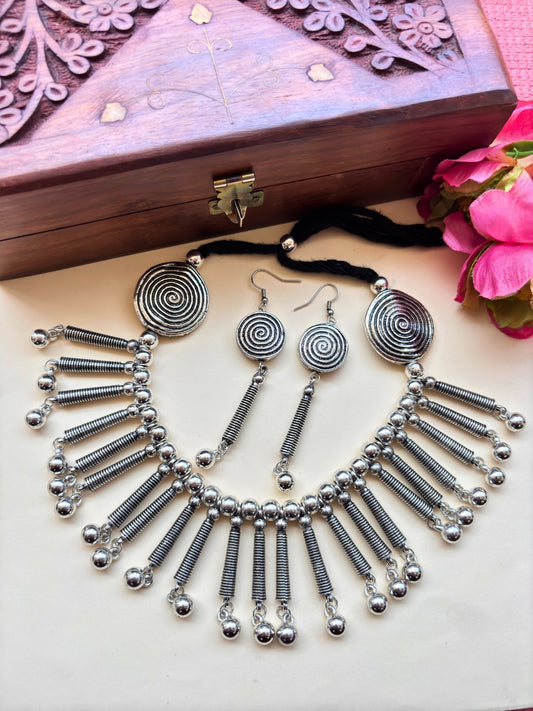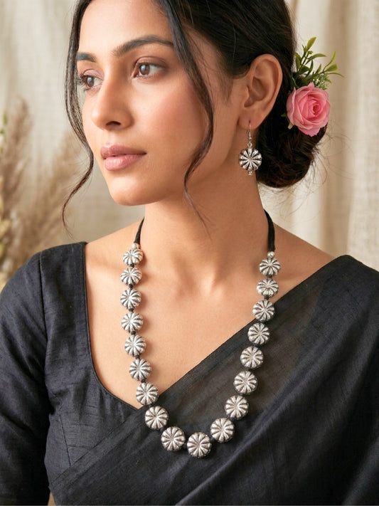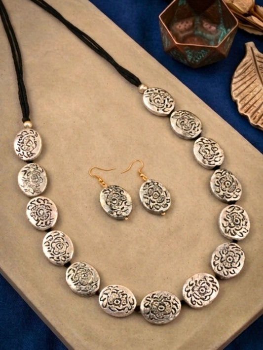 VIVAZS Silver-Plated Oxidised Jewellery Set
