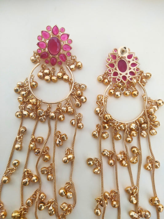 VIVAZS Kundan Crystal Statement Kan Chain Earrings (Pink)