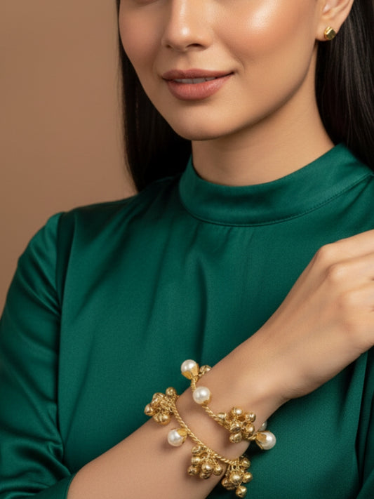 VIVAZS Set of 2 18K Gold Toned Pearl Adjustable Gungaroo Traditional Bangles