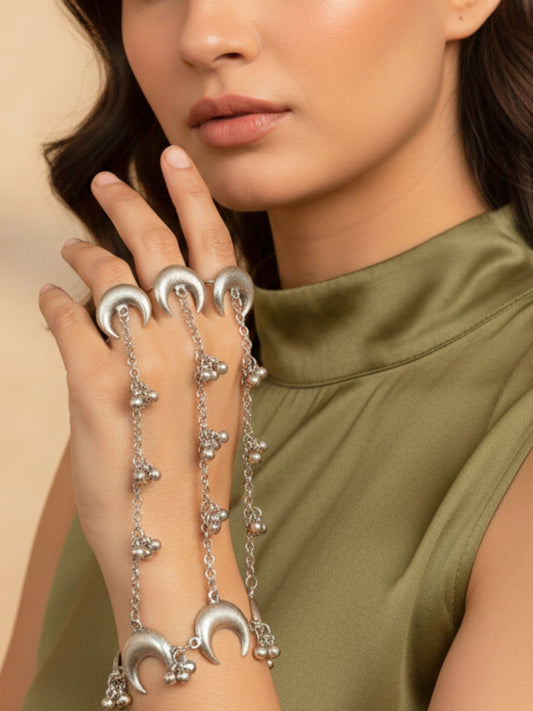 Silver Plated Hathphool Ring Bracelet (One Hand Only)