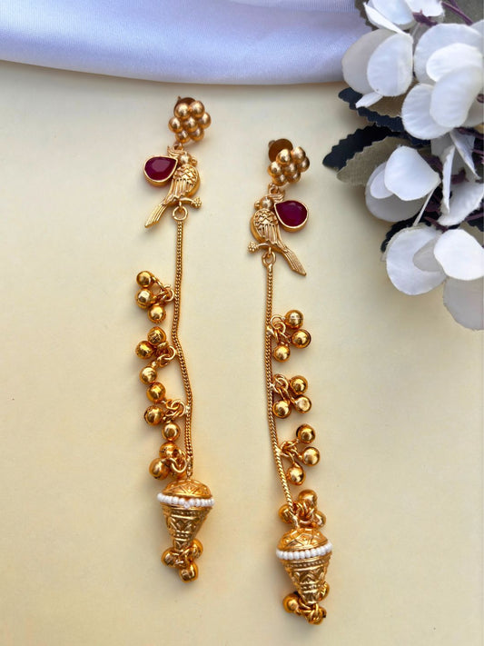 VIVAZS Gold Plated Kashmiri Long Drop Earrings (Red)