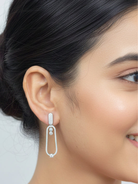 Silver-Plated Contemporary AD Studded Drop Earrings