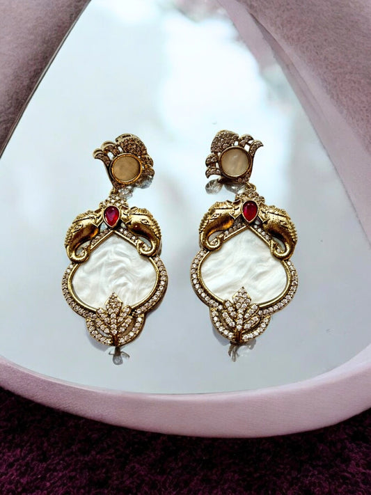 VIVAZS Gold -Plated Mother of Pearl Contemporary Drop Earrings