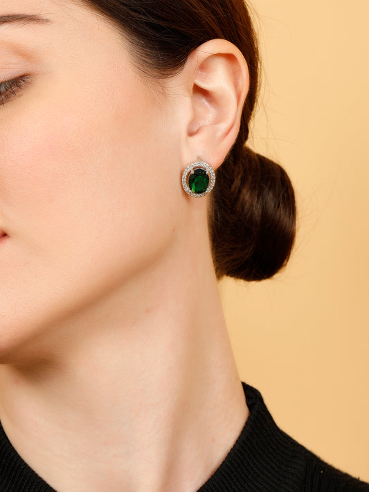 VIVAZS Silver-Plated Contemporary AD Studded Stud Earrings