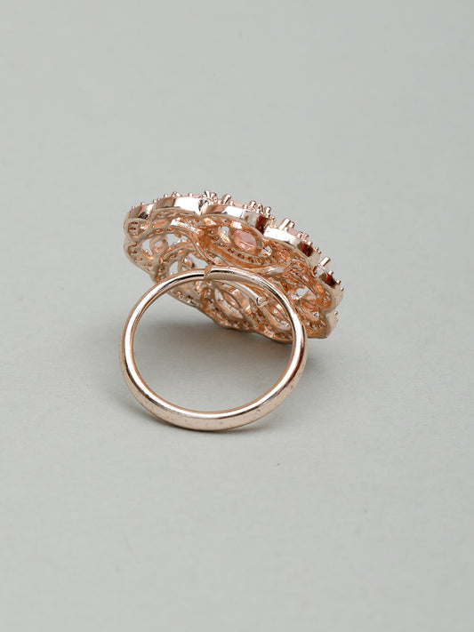 VIVAZS Rose Gold Plated AD-Studded Adjustable Ring