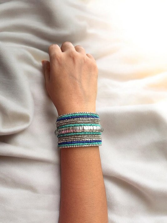 VIVAZS Shimmering Turquoise Blue and Silver Bracelet/Bangle