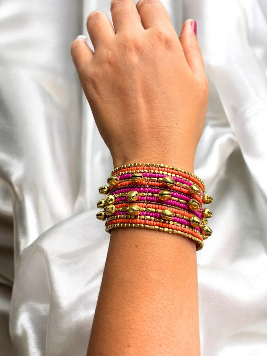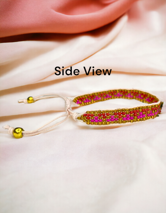 VIVAZS Seed Bead Love Bracelet - Dark Pink, Red and Golden