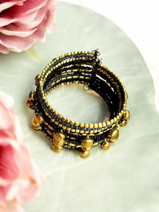 VIVAZS Women Golden -Plated Oxidised Cuff Bracelet/Golden Handcuff