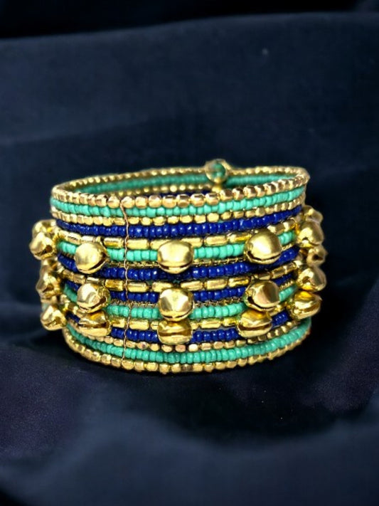 VIVAZS Shimmering Turquoise Blue and Golden Bangle with Ghungroo