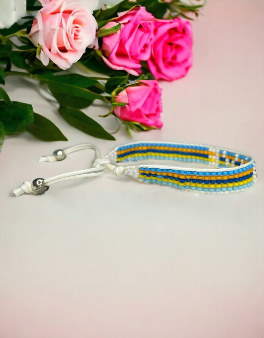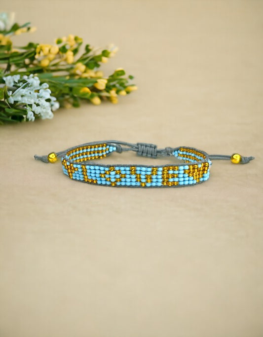 VIVAZS Seed Bead Love Bracelet - Navy Blue and Golden