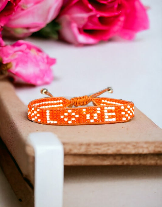 VIVAZS Seed Bead Love Bracelet - Orange and White