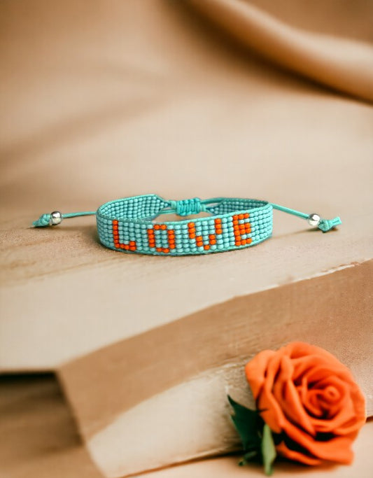 VIVAZS Seed Bead Love Bracelet- Turquoise and Orange