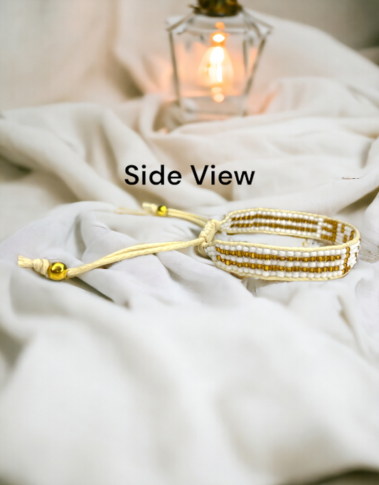 VIVAZS Seed Bead Love Bracelet -White and Golden