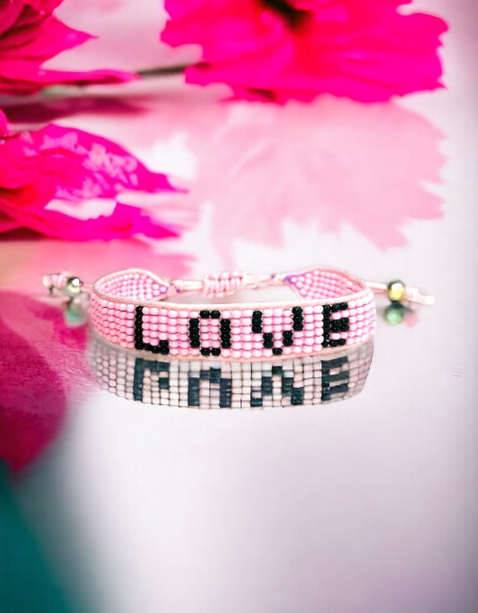 VIVAZS Seed Bead Love Bracelet- Pink and Black