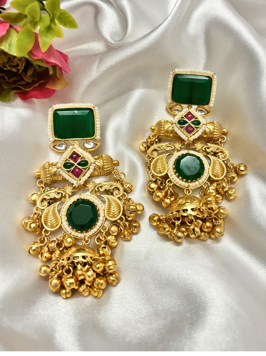 VIVAZS Kashmiri Gold Plated Drop Earrings Green