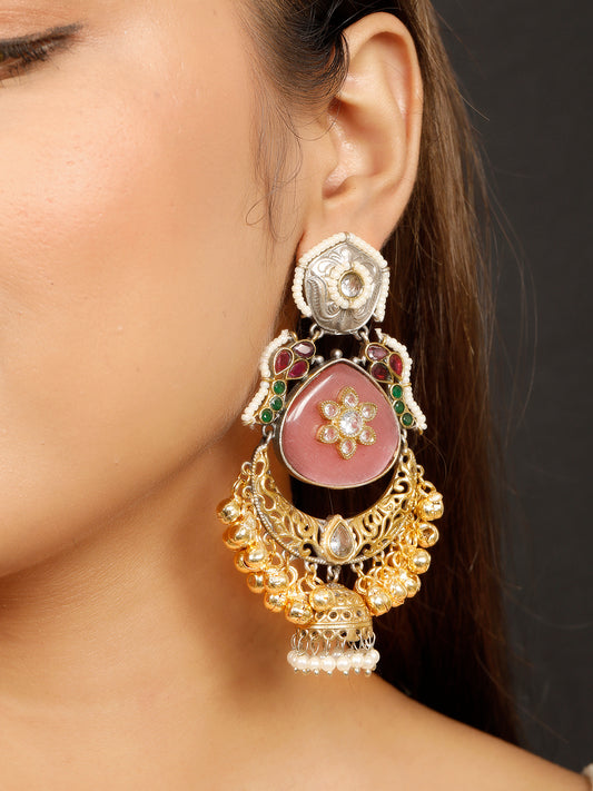 VIVAZS Kashmiri Drop Earrings Jhumkas (Pink)