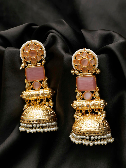 VIVAZS Handmade Gold Plated Long Pink Jhumka Earrings | Contemporary