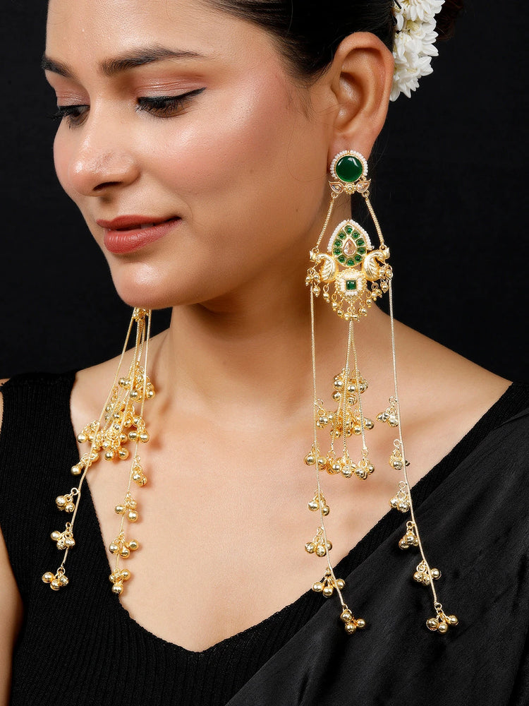 VIVAZS Gold Plated Kashmiri Long Drop Earrings (Green)