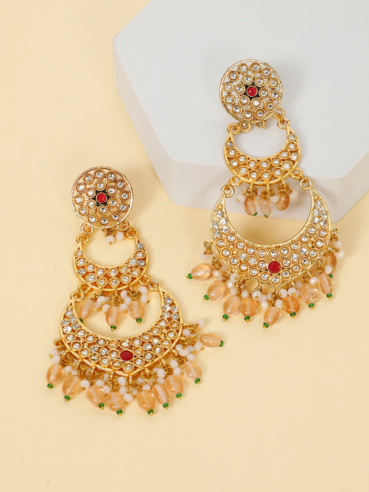 VIVAZS Kundan Pearl Chandbali (Peach)
