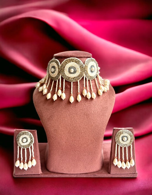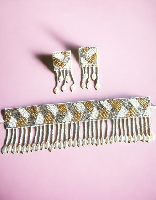 Vivazs White Silver Handmade Choker Necklace Sets For Girls & Women