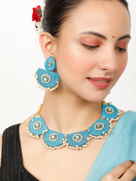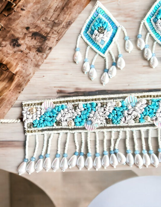 Vivazs Aqua Blue Choker Set- Haldi Mehndi Jewellery Set