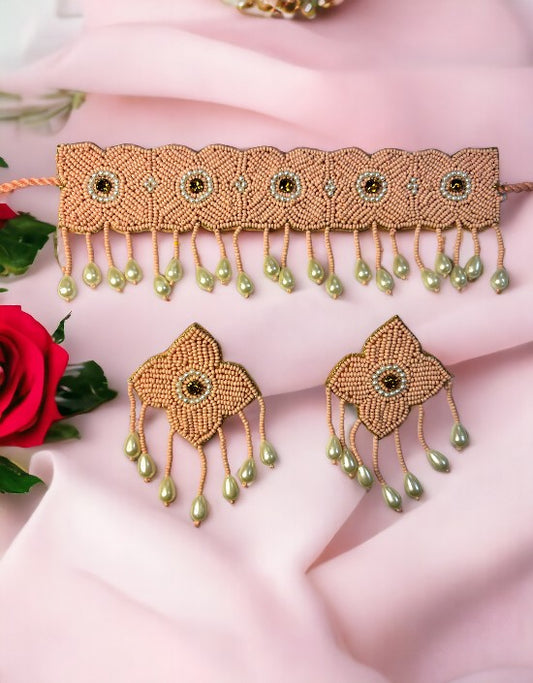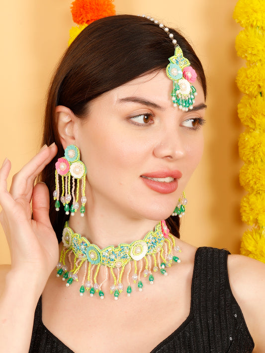 Vivazs Handmade Turquoise beaded Choker Set - Haldi Mehndi Jewellery Set