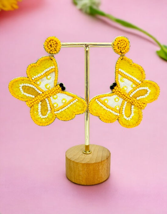 VIVAZS Beautiful Yellow color Beaded Butterfly Earrings