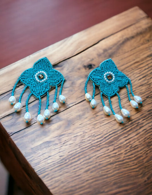 VIVAZS Gold Plated & Pearl Sky Blue Beaded Jewellery Set