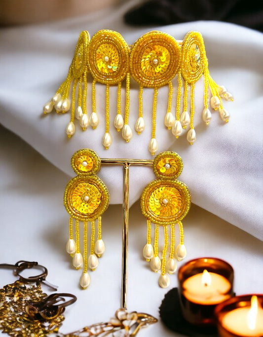 Vivazs Yellow color jewelry set for Haldi Ceremonies for Women and Girl