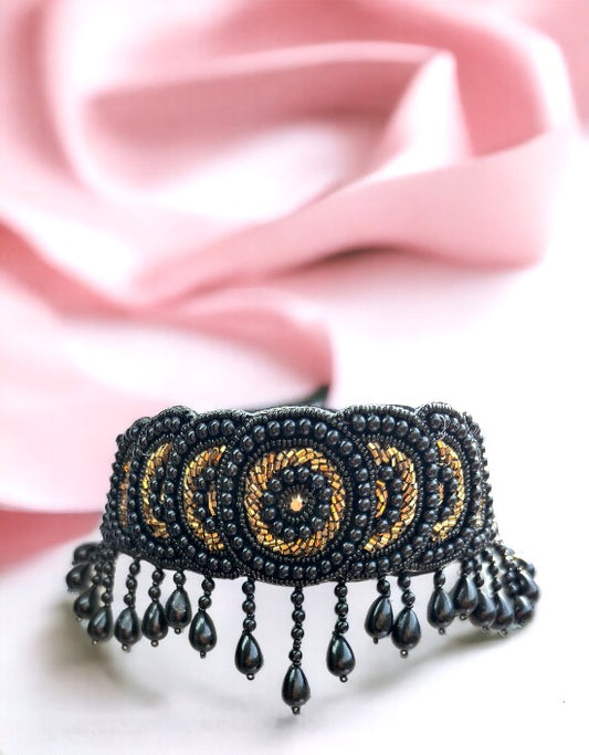 Vivazs Black Golden Haldi Mehndi Choker Jewellery Set For Women - Choker and Earrings Set For Women