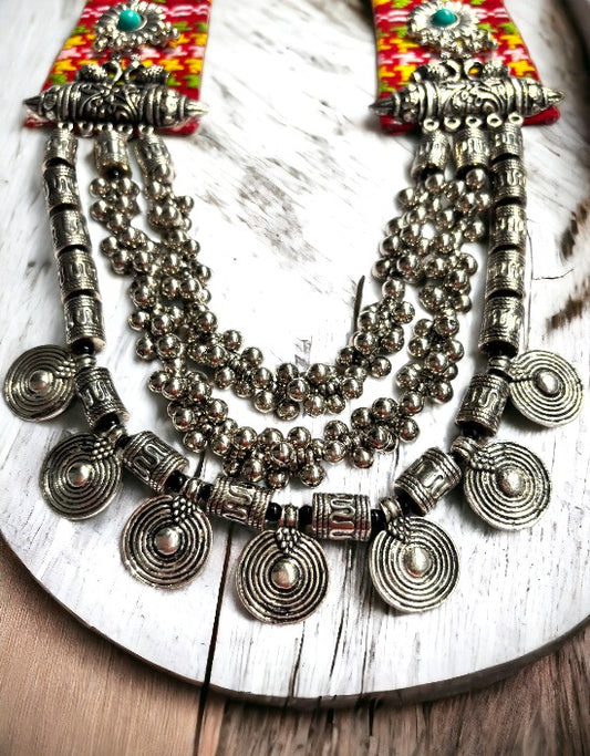 VIVAZS Boho Fused Layered Necklace in Red Color