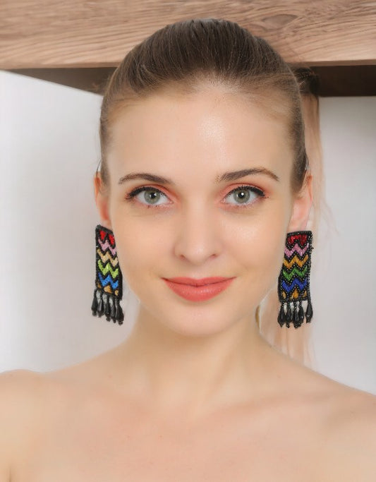 VIVAZS Quirky Handmade Multicolored Beaded Embroidered Earrings