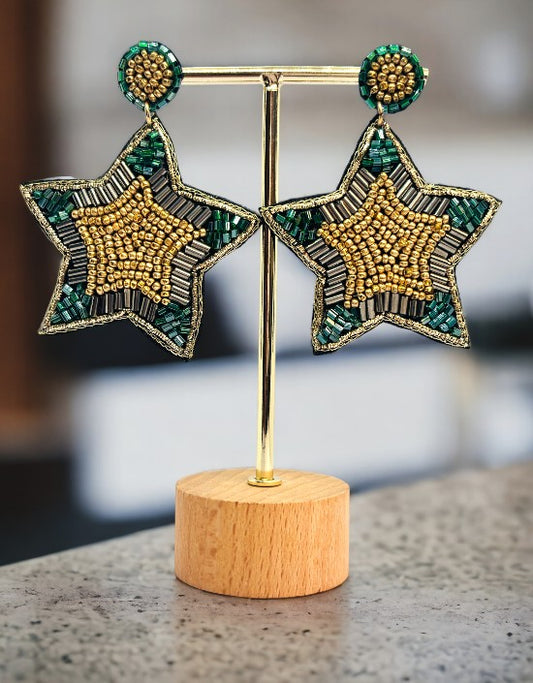 VIVAZS Starfish Beaded Dangle Earrings ( Green)