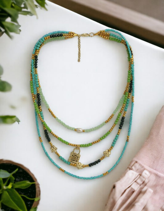 VIVAZS Multicolor Beaded Necklace - Multi Layer Beaded Necklace