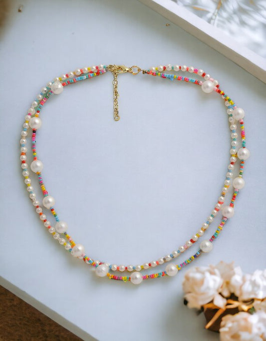 VIVAZS 3 Layered multicolor handmade bead Necklace