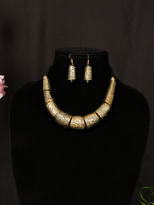 VIVAZS Golden Tribal Choker Necklace Jewellery Set for Women