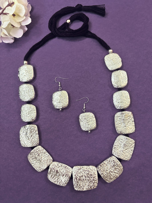 VIVAZS Vintage Oxidized Fashion Necklace Earring Jewelry Set(Silver)