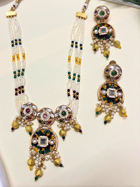 VIVAZS Stylish Kundan Beads Jewellery Set