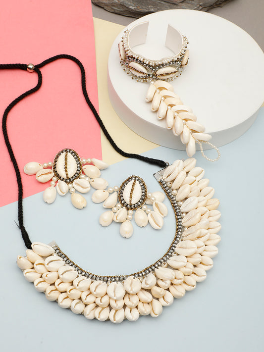 Vivazs Cowrie Shell Choker Necklace set with earrings and Bracelet(Adjustable)