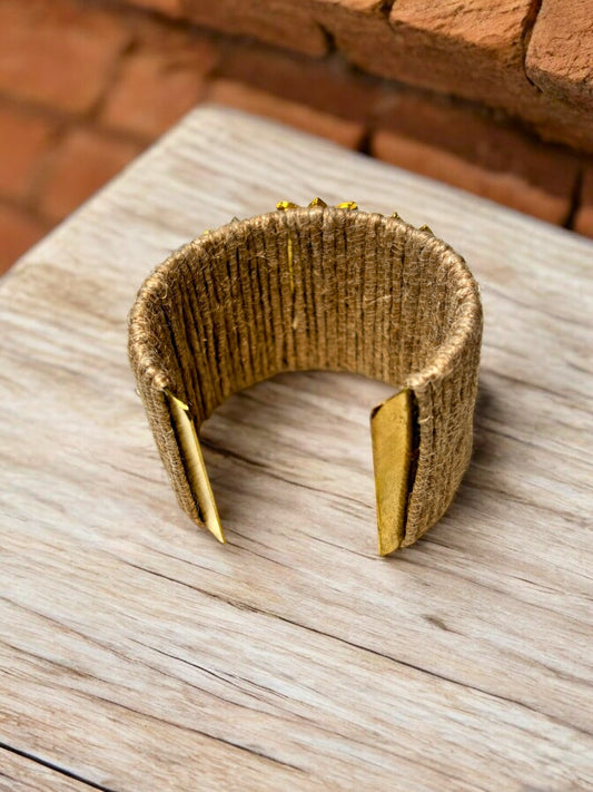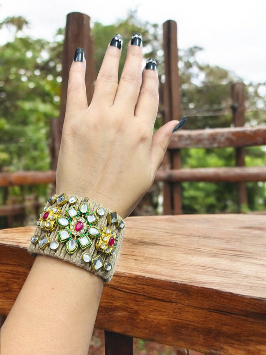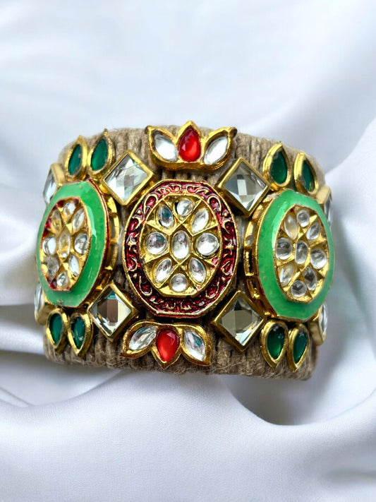 VIVAZS Golden and Green Kundan Adjustable Jute Bracelet