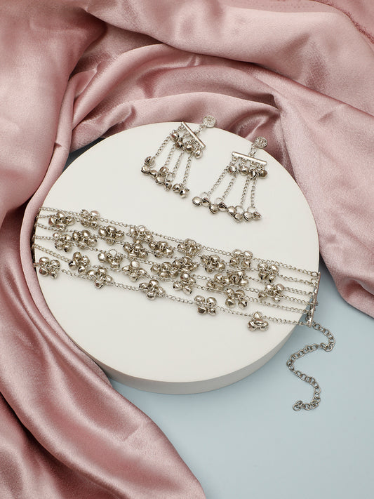 VIVAZS Silver- Plated Oxidised Ghungaroo Jewellery Set