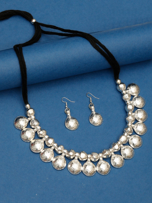 VIVAZS Silver-Plated Oxidised Jewellery Set