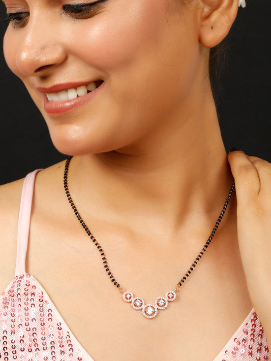 VIVAZS 18k Rose Gold Plated AD & CZ Studded Mangalsutra Necklace with Black Beads
