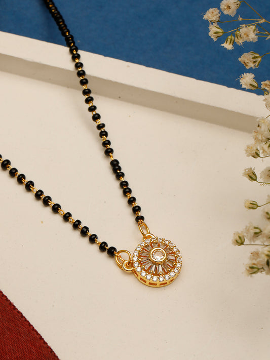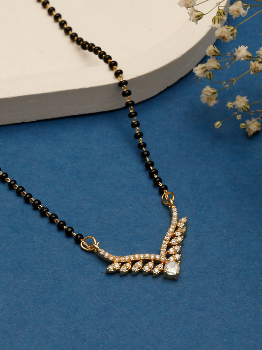 VIVAZS 18K Gold Plated AD & CZ Studded with Gold & Black Beads Mangalsutra Necklace