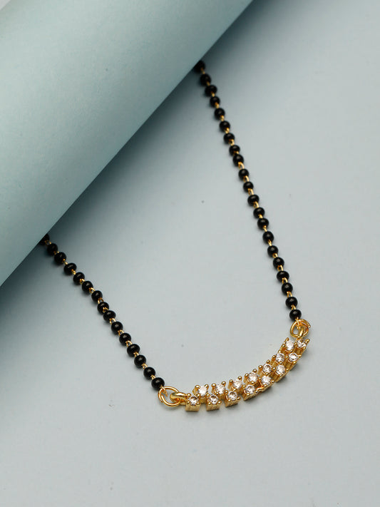 VIVAZS Gold-Plated AD-Studded & Black-Beaded Mangalsutra