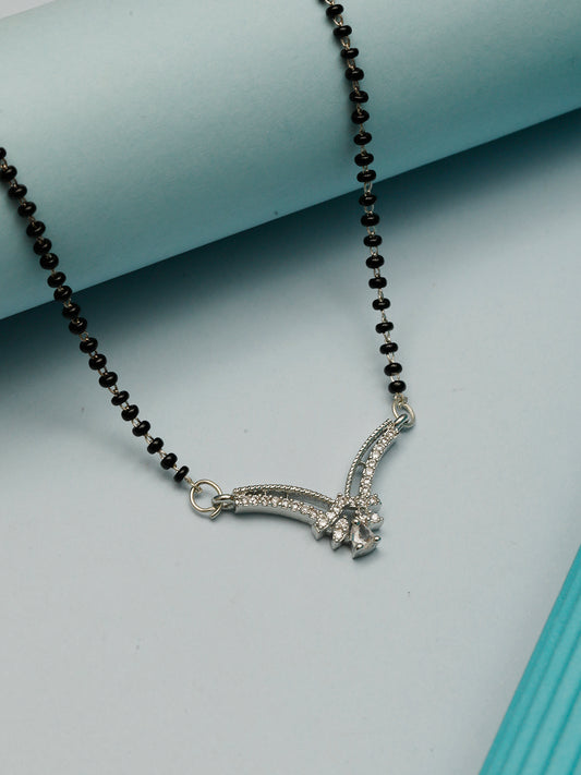 VIVAZS Silver-Plated AD-Studded & Beaded Mangalsutra