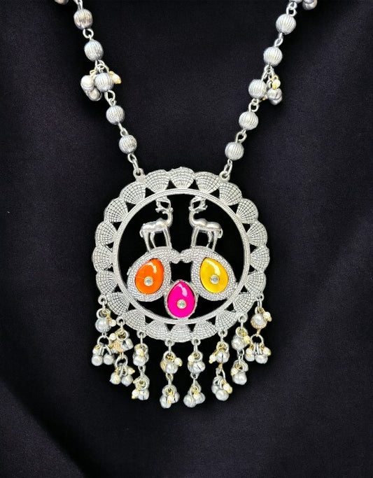 VIVAZS Oxidised German Silver Pendant Necklace Set