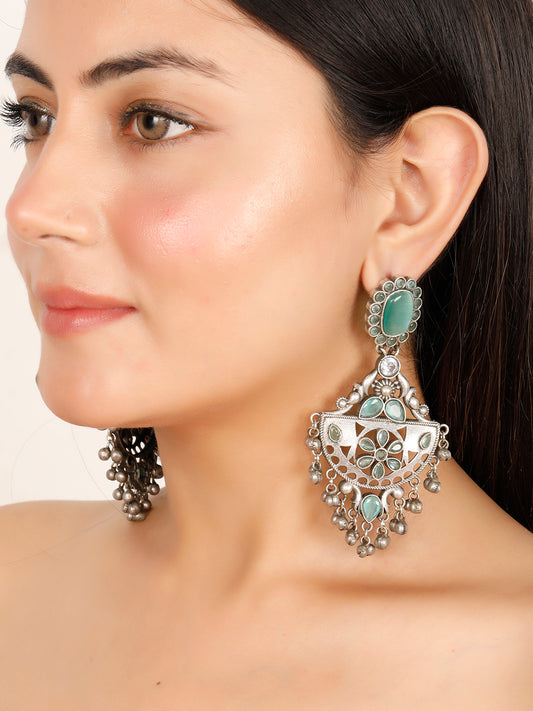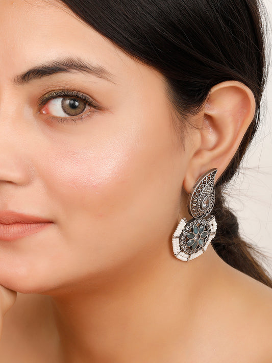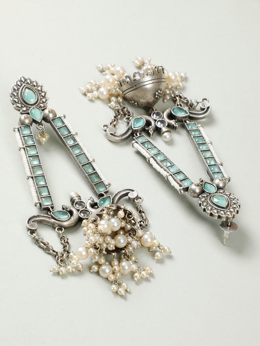 VIVAZS Traditional Stone Studded Silver-Plated Drop Earrings