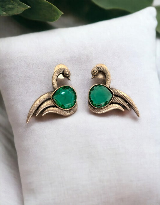 VIVAZS Bird Silver Oxidised earrings (Green)