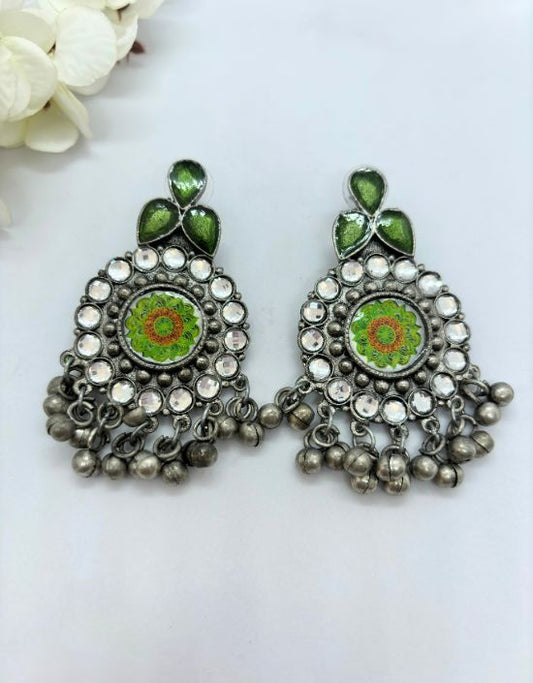 VIVAZS Silver Oxidised Earrings - Green